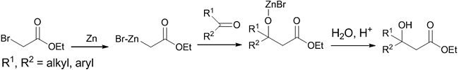 Different Zn complexes will show different reactivities, for example, the weak nucleophilic Me2Zn was found to be less reactive than Et2Zn [34]. Zinc reacts slowly with halo compound due to the formation of the oxide coating on Zinc. This problem was solved to some extent by using activated Zn like Rieke-Zn [35] or Cu-Zn alloy [36]. Later, Knochel developed a practical method for the activation of Zn. It was reported that for the synthesis of β-hydroxyesters, ZnCl2 or SnCl2 reduced with sodium in liquid ammonia was used. Some additives in combination with zinc are also used for this reaction which includes tantalum, vanadium binuclear complex, Hg2Cl2, triethyl boron, cerium (III) salts, etc.