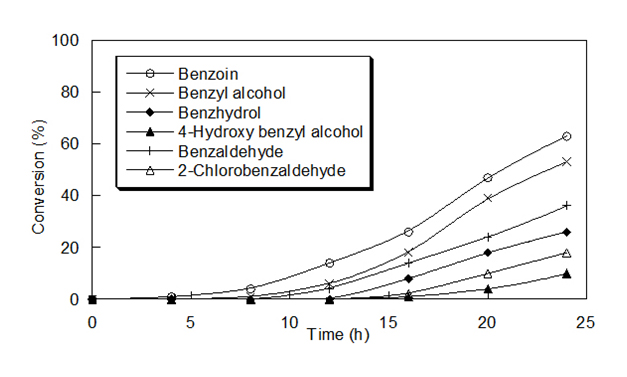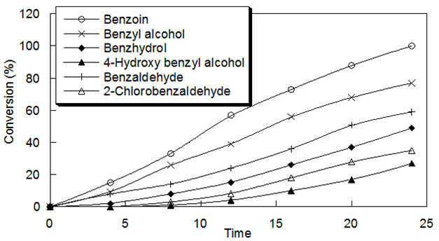 Five-fold molar excess of the reagent was added to benzoin (100 mg) in cyclohexane and refluxed. The extent of oxidation was followed by TLC at regular intervals of time.