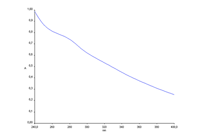 The shape of UV-Vis spectrum of HA (Figure 1) is characterized by a monotonical absorbance decrease with increasing wavelength, and by a shoulder between 265 and 295 nm prevalently due to aromatic rings. The molar absorption coefficient at 280 nm (e280) has been used as an index of the degree of aromaticity [42].