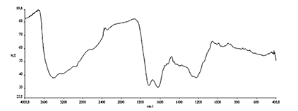 In line with results by Miikki et al. [43], the IR spectrum (Figure 2) displayed distinctive bands at ~ 1200 and 1700 cm-1 (carboxyl groups) and 1650 cm-1 (unsaturated C=C).