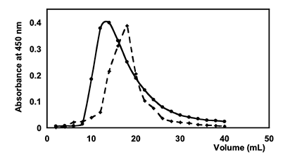 chromatogram of the more concentrate solution (Figure 3), not considering the lower absorbance of the eluate. This confirms the absence of significant aggregation phenomena under the experimental conditions investigated.