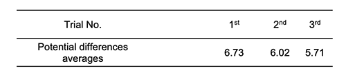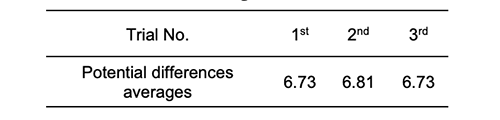 Potential difference average during 6 hours of onetime soaking is 8.64 V, while the