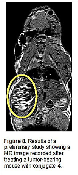 Unfortunately, efforts to translate the promise seen in the in vitro studies into xenograft murine tumor models proved challenging. Although in one preliminary study, evidence of tumor localization was seen through MR imaging (Figure 8), difficulties were encountered in finding a formulation adequate to allow for multiple tail vein injections.