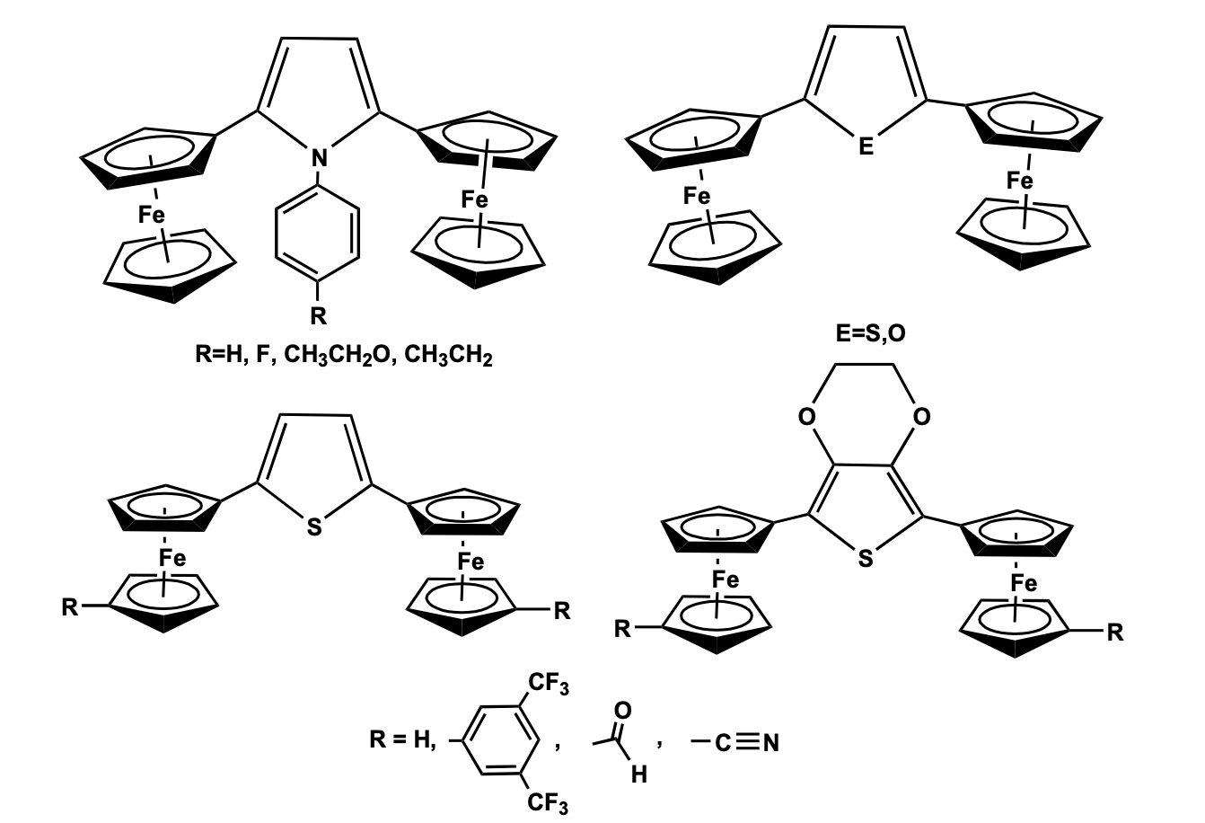 Nemykin et al. has reported di-ferrocenyl compounds (Figure 5 ) with two chemically equivalent ferrocenyl units.