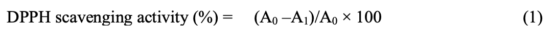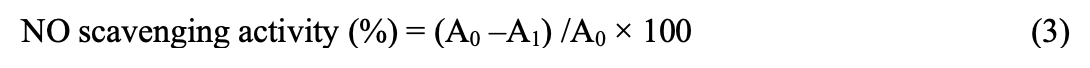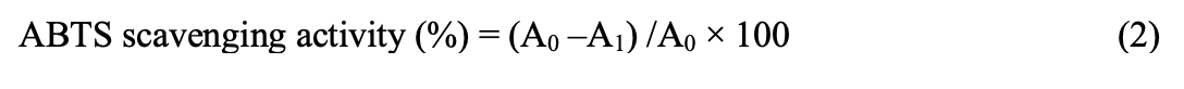 The inhibition percentage of ABTS radicals was calculated using the following formula (equation 2):