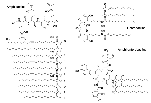 Suites of Amphiphilic Siderophores