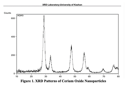X-ray diffraction was used to investigate the sample of CeO2 nanoparticles (XRD-6000). The morphology of nanoparticles was studied using transmission electron microscopy. The shape of the CeO2 nanoparticles was studied under a scanning electron microscope (SEM). Nanoparticle morphology was examined using transmission electron microscopy (TEM).