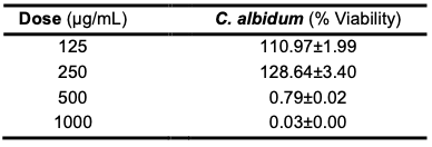 A. niger showing a significant MIC of 12.5 mg/mL. The seed oil of C. albidum possesses
