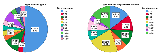 Also, the comparison in duration of disease in Figure 3 showed highly significant differences for the DPN group. It was over a longer period compared to the T2DM group (p<0.05) [14].