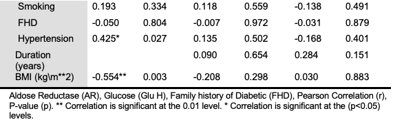 In this current study, there was also no relationship between the alteration in HbA1c and glucose with alteration in the level of aldose reductase. It corresponded with other studies that reported no statistically significant correlation observed between the level of AR and the average of HbA1c and fasting blood glucose [36,37].