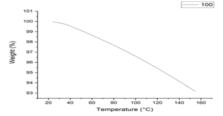 TGA analysis was carried on the V5/A Dupont 2100 at a heating range of 10°C/min under a nitrogen atmosphere in an alumina pan. The thermos-gravimetric results depict a loss in the mass on increasing the temperature. The polymer was stable up to 40°C and started losing weight above this temperature. We noted a continuous decomposition until 160°C (Figure 4).