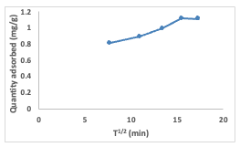 The intraparticle diffusion model is often represented by a plot of the amount of adsorbate adsorbed (Qt) against the square root of time (t1/2) using the equation (8) below: