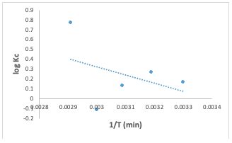 The Kf, Freundlich constant is the adsorption capacity, that is the adsorptive power, and the1/n, heterogeneity factor, indicates the energy of adsorption. The 1/n value of 1.527 obtained indicates the unfavorable adsorption of Congo red dye for adsorption onto the adsorbents, while lower R2 value of 0.359 for the adsorbents indicates that the Freundlich model less fits the experimental data.