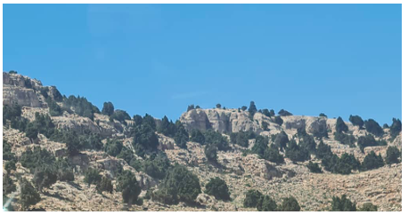 The leaves of Juniperus excelsa M.Bieb. were collected in July 2023 from the al- Khusha in the mountains of al-Qalamoun, Ras al-Ma'arra village, Yabroud area, Damascus countryside, Syria. The fresh leaves were separated from the bark and then washed with water thoroughly and dried for 24 hours at room temperature in shadow. The leaves were stored at -20°C until use, then crushed immediately before using into small pieces using an electric grinder, where the particle dimensions were less or equal to 0.2 mm. Figure 1 shows Juniperus excelsa M.Bieb. trees with the taxonomy of the plant [15].