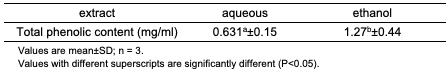 Results given in Table 3 indicate that the ethanol extract shows high total phenol content. The result is similar to those reported by Rebaya et al. (2014) and Do et al. (2014) [13, 31]. Phenolics are the most predominant phytochemicals present in nature, and to date, about 10,000 different structures are currently described [32]. Phenolic components represent the largest class of secondary metabolites which are known as exceptional antioxidants, and their antioxidant activity is based on their redox potential. They include phenolic acids, flavonoids, tannins, stilbenes, curcuminoids, coumarins, lignans, quinones and others. Various bioactivities of phenolic compounds are responsible for their biological properties, like antimicrobial, anticarcinogenic, anti-inflammatory and therapeutic effects [33], and also play a major role in modifying gene expression [18]. Phenolic substances have important contributions to human health. These compounds have been reported to play an effective role in preventing cancer and cardiovascular diseases by preventing free radical formation in the body [30].